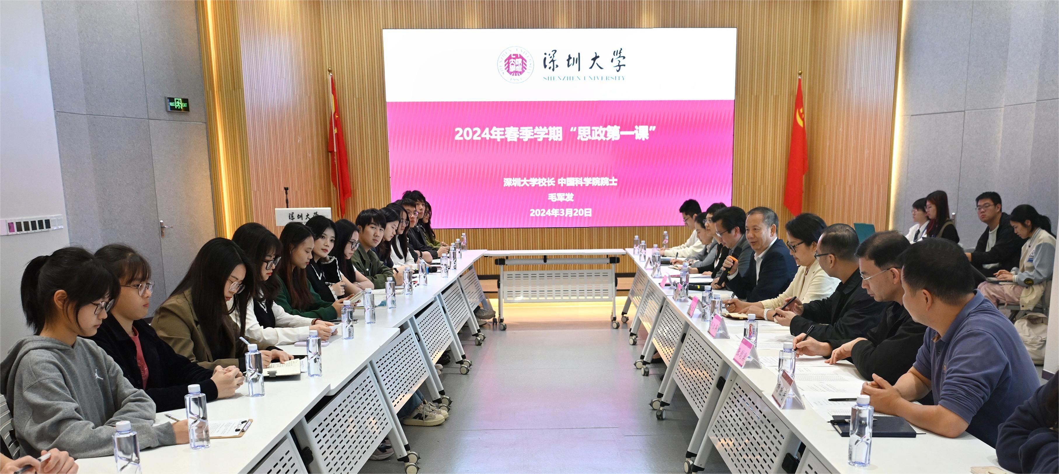 “‘新質生產力’是我主要關注的熱議關鍵詞?!薄拔覍W習全國兩會精神的心得體會可以濃縮提煉為一句話:踔厲奮發(fā)正當時!”……掌聲頻起,氣氛熱烈,今年深圳大學校長“思政第一課”有些不一樣。3月20日下午,深圳大學校長毛軍發(fā)在粵海校區(qū)聚翰齋106黨建活動室開講2024春季學期“思政第一課”。不同于往年的單向授課模式,今年毛軍發(fā)與學生代表齊坐一堂,交流學習全國兩會精神,面對面調研學生思想動態(tài),回應學生熱切需求,共議...