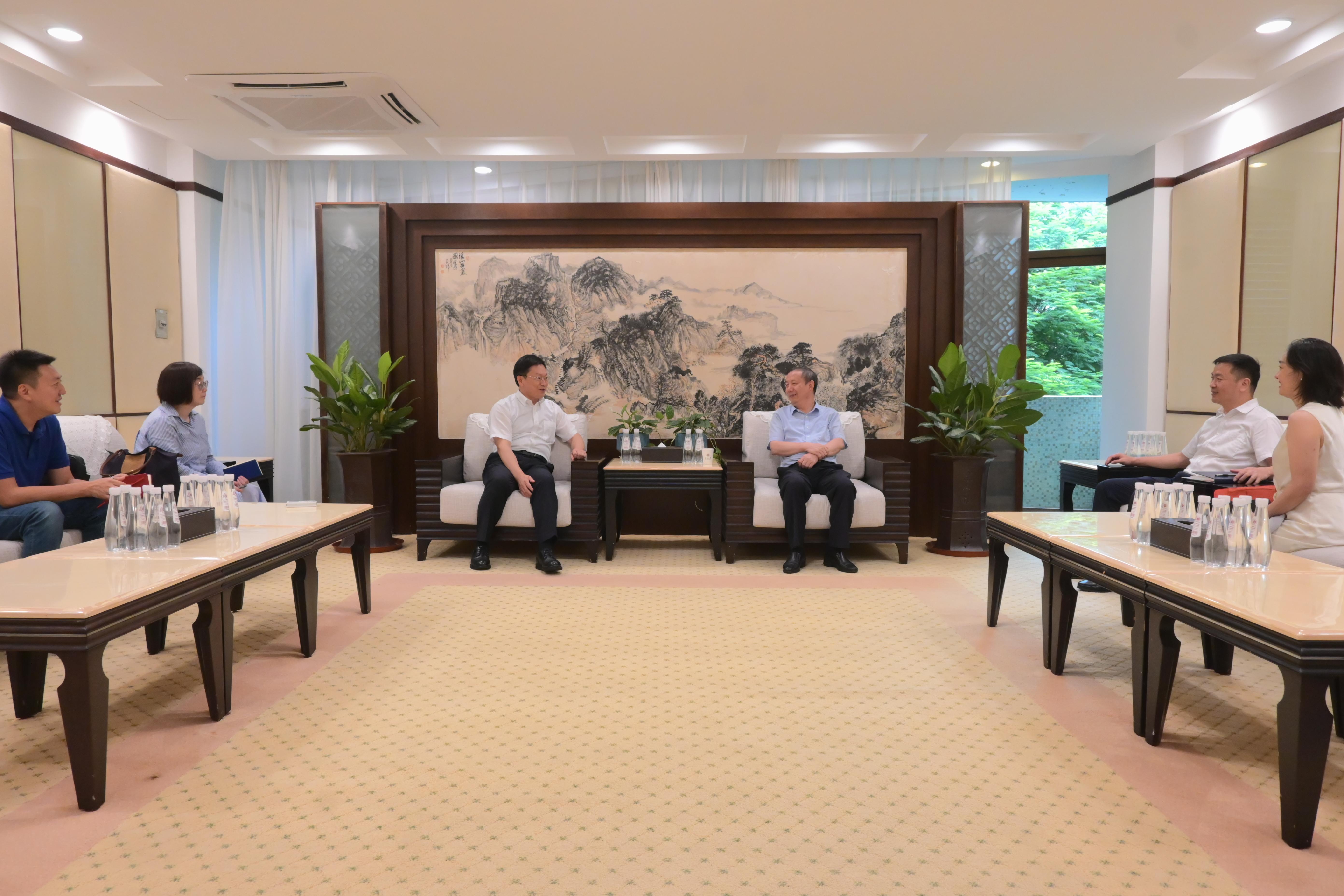 8月22日,教育部中外語言交流合作中心副主任胡志平帶隊到深圳大學調研國際中文教育發展情況及數字化中文教學情況。深圳大學校長毛軍發、黨委副書記吳報水在匯元樓205會見來賓,隨后雙方在201開展座談會。教育部中外語言交流合作中心教學與資源處、財務處負責人,深圳大學國際交流與合作部、國際交流學院、信息中心、KAUST(沙特阿卜杜拉國王科技大學)-SRIBD(深圳市大數據研究院)聯合實驗室負責人參加座談。