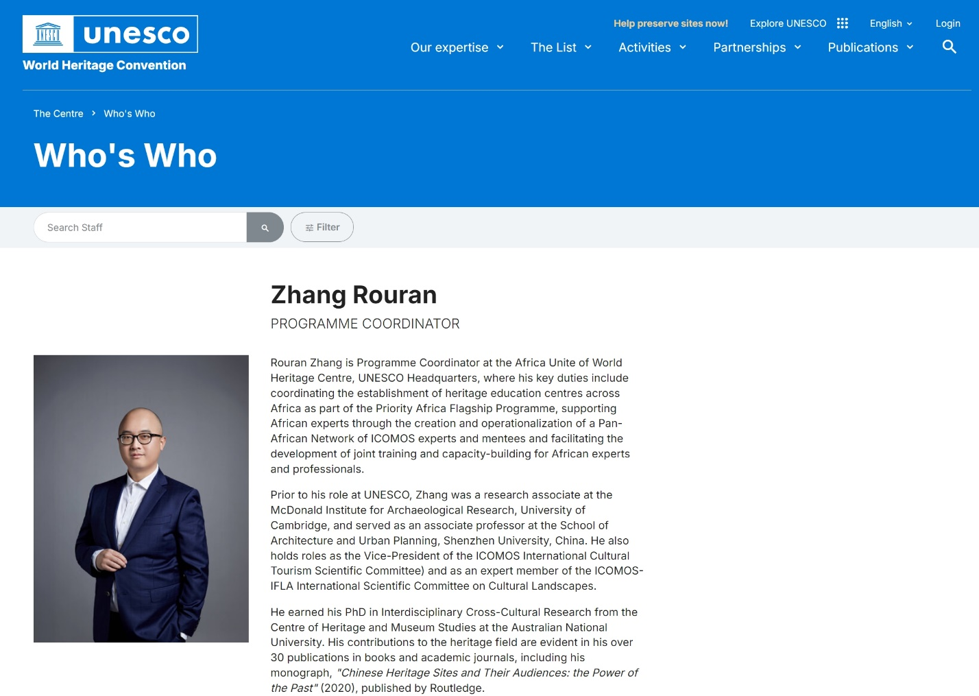 深圳大學建筑與城市規劃學院副教授張柔然,經中國聯合國教科文組織全國委員會從全國高校和科研院所中選拔推薦,并通過聯合國教科文組織的遴選,自2024年1月起,作為深圳大學的代表,由教育部派遣至聯合國教科文組織總部世界遺產中心擔任P4級項目協調官。