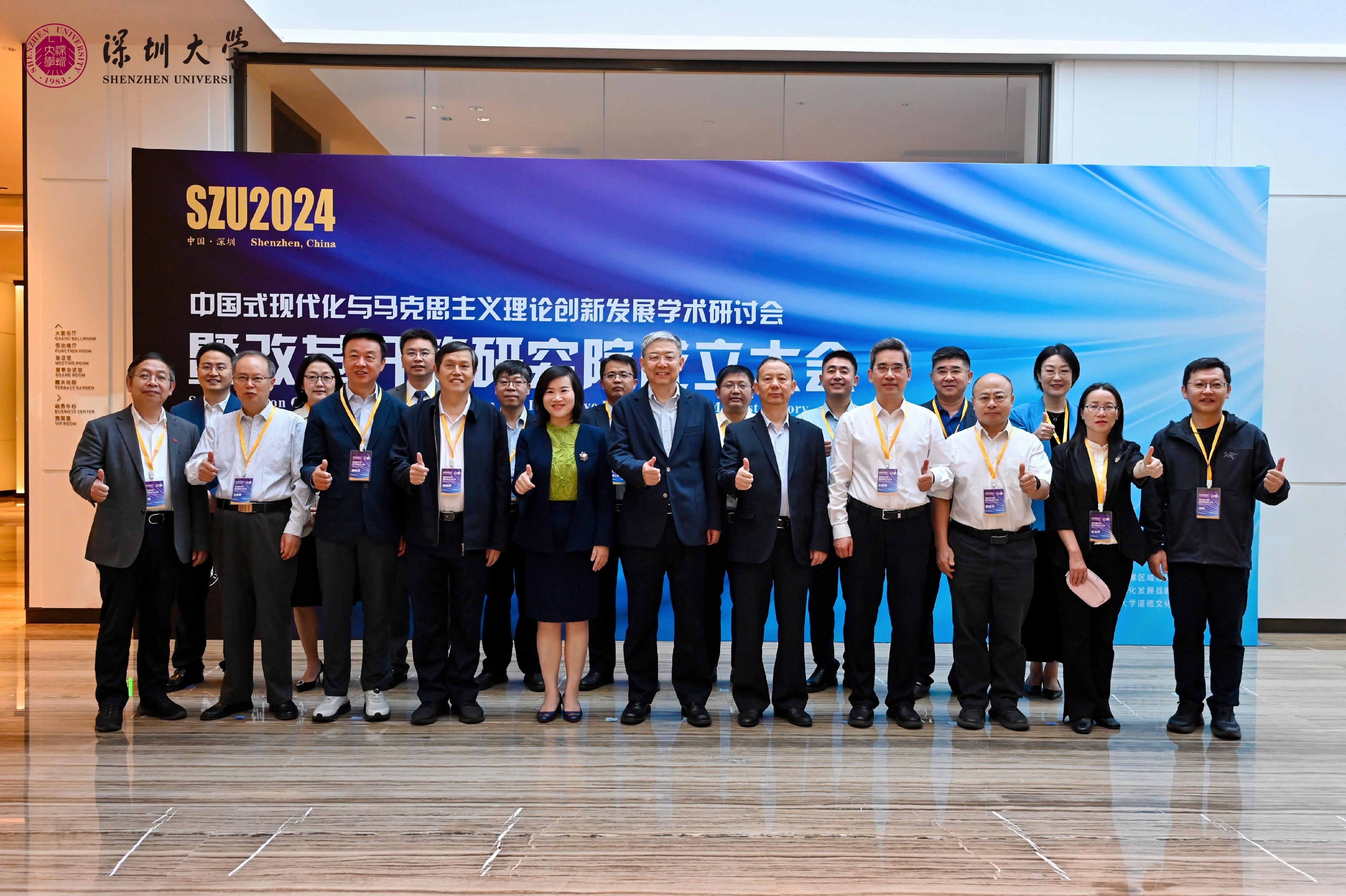 11月8日,深圳大學成功舉辦“中國式現代化與馬克思主義理論創新發展學術研討會暨改革開放研究院成立大會”。12位來自全國的高層次馬克思主義理論學科專家、高校馬克思主義學院院長與深圳大學馬克思主義學院全體師生共聚一堂,共同探討進一步貫徹落實黨的二十屆三中全會精神和習近平總書記全國教育大會重要講話精神,為深圳大學馬克思主義學科的進一步發展建言獻策,打造深圳大學馬克思主義理論學科特色品牌。深圳大學黨委書記、...