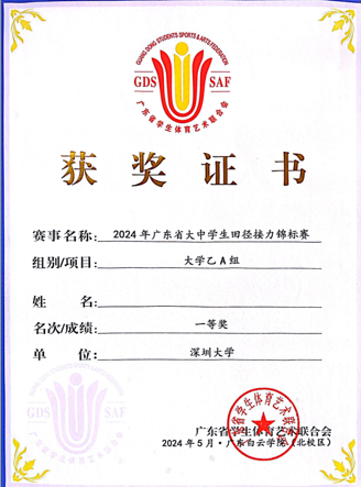 5月17日至19日,由廣東省教育廳作為指導(dǎo)單位、廣東省學(xué)生體育藝術(shù)聯(lián)合會作為主辦單位、廣東白云學(xué)院作為承辦單位的2024年廣東省大、中學(xué)生田徑接力錦標(biāo)賽于廣東白云學(xué)院(北校區(qū))舉行,深圳大學(xué)田徑隊共派出16名學(xué)生參加本次賽事,榮獲團(tuán)體總分第二名的佳績、乙A組別團(tuán)體總分一等獎;鄧萬金、付新虎、柯家輝等獲得優(yōu)秀教練員稱號。
