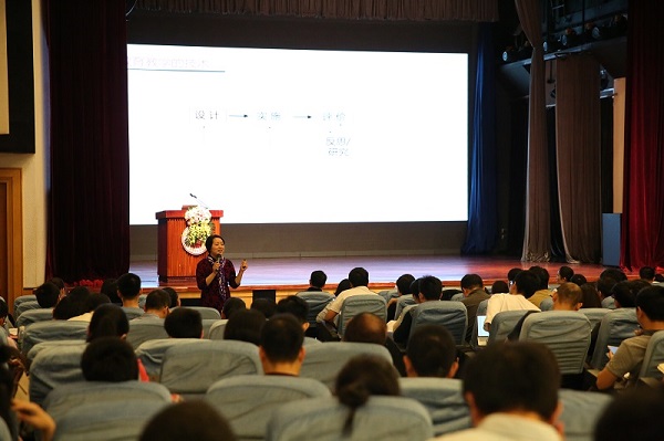 在談到“提高教學(xué)成功概率應(yīng)遵循的教學(xué)設(shè)計原則”這個問題上,劉教授提出了“四個必須”:“必須充分考慮社會發(fā)展對學(xué)生的要求”、“必須以學(xué)生為導(dǎo)向”、“必須應(yīng)用系統(tǒng)方法”以及“必須以教與學(xué)相關(guān)的理論作為科學(xué)決策的依據(jù)”。劉教授列舉自己在教學(xué)過程中的親身經(jīng)歷,強調(diào)教育教學(xué)要幫助到每一個學(xué)生,要承認(rèn)并發(fā)揮每個學(xué)生的潛力,學(xué)校的責(zé)任和老師的使命是尋找能使每一個學(xué)生達(dá)到其最高學(xué)習(xí)和發(fā)展水平,并得到健康成長與發(fā)展的條件。