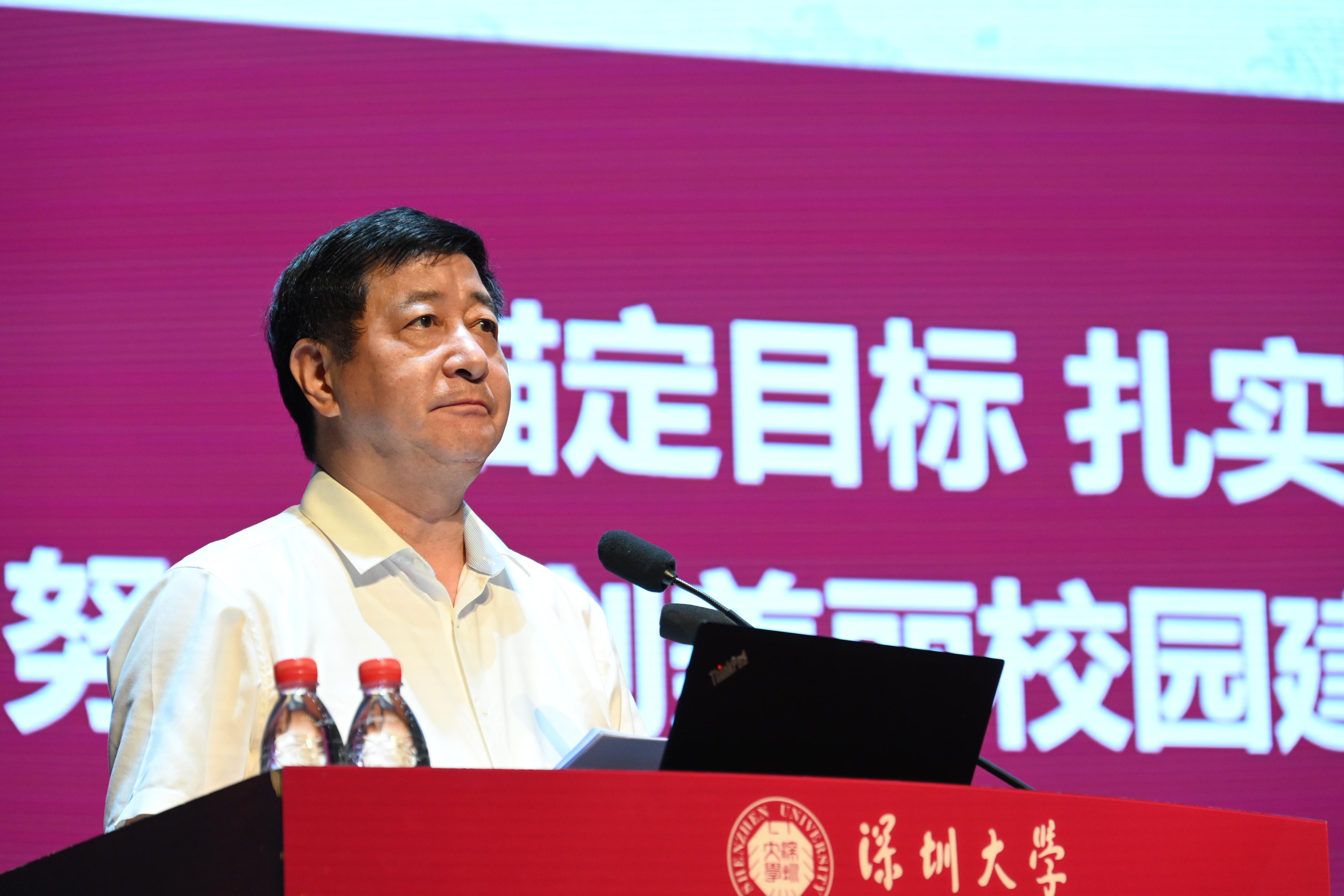 9月6日下午,深圳大學(xué)在粵海校區(qū)國(guó)際會(huì)議廳召開(kāi)新學(xué)期工作會(huì)議。校黨委書(shū)記李清泉、校長(zhǎng)毛軍發(fā)分別部署新學(xué)期黨建工作、行政工作,校黨委副書(shū)記、紀(jì)委書(shū)記王月興,副校長(zhǎng)徐晨、李永華、汪永成、張曉紅、周輝出席會(huì)議并布置新學(xué)期分管工作。王月興主持會(huì)議。