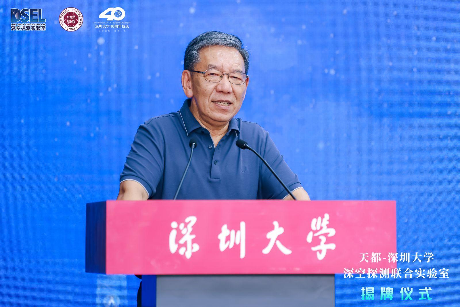 2023年9月10日,天都-深圳大學深空探測聯合實驗室揭牌儀式在深圳大學匯文樓舉行。深空探測實驗室主任兼首席科學家、中國工程院院士吳偉仁院士,副主任兼理事會秘書長胡朝斌,嫦娥七號任務副總師唐玉華,深圳市科創(chuàng)委副主任鐘海,基礎研究處處長陳慶云,深圳市發(fā)改委創(chuàng)新能力處副處長肖勇,深圳大學黨委書記李清泉教授,校長、中國科學院院士毛軍發(fā),中國工程院院士謝和平等代表出席了本次儀式,會議由深圳大學副校長周輝主持。