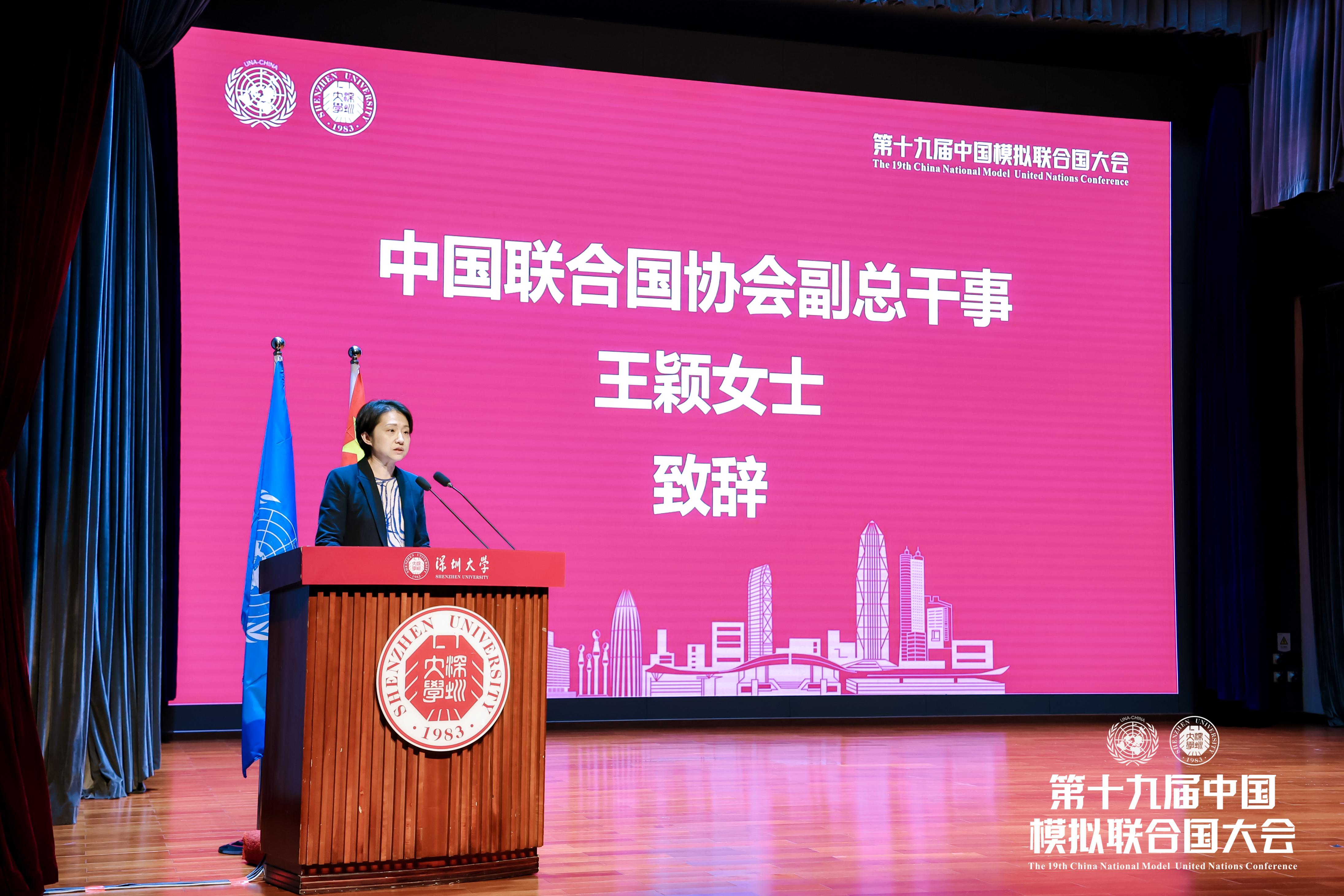 王穎代表中國聯合國協會感謝深圳大學對會議成功舉辦作出的貢獻,感謝專家評審團的熱情指導,并對大會主席團以及所有參會師生致以謝意。她表示,第十九屆中國模擬聯合國大會是大家踏上未來征程的新起點,希望大家把個人夢想融入國家發展中,在今后的學習和工作中繼續磨練,提高自己,踔厲奮發,勇于前行。