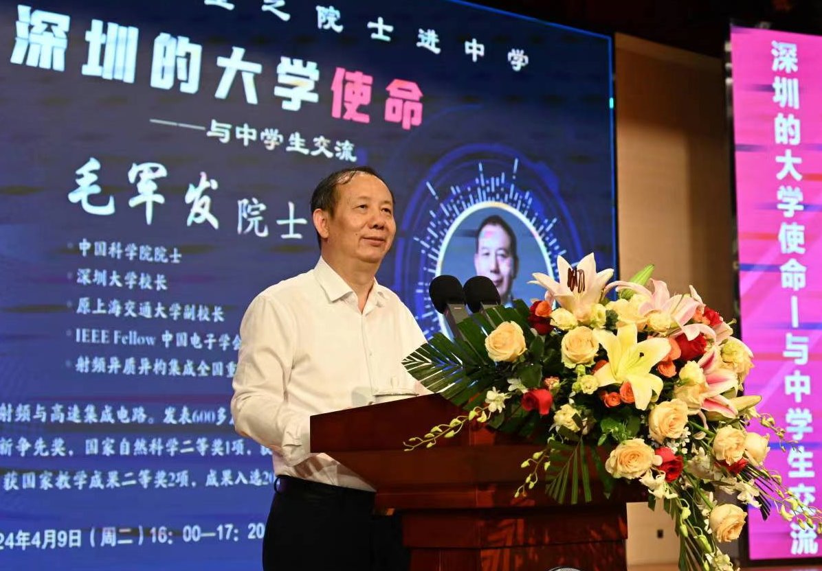“一流大學是一流城市的名片,一流城市是一流大學的土壤。”4月9日下午,深大附中高中部演會中心座無虛席,深圳大學校長、中國科學院院士毛軍發應邀做客深大附中拿云大講堂,以“深圳的大學使命”為題帶來精彩一課。這兩所在深圳一脈相承的學校,再次共同明確了“一流大學”與“一流附中”的戰略定位。