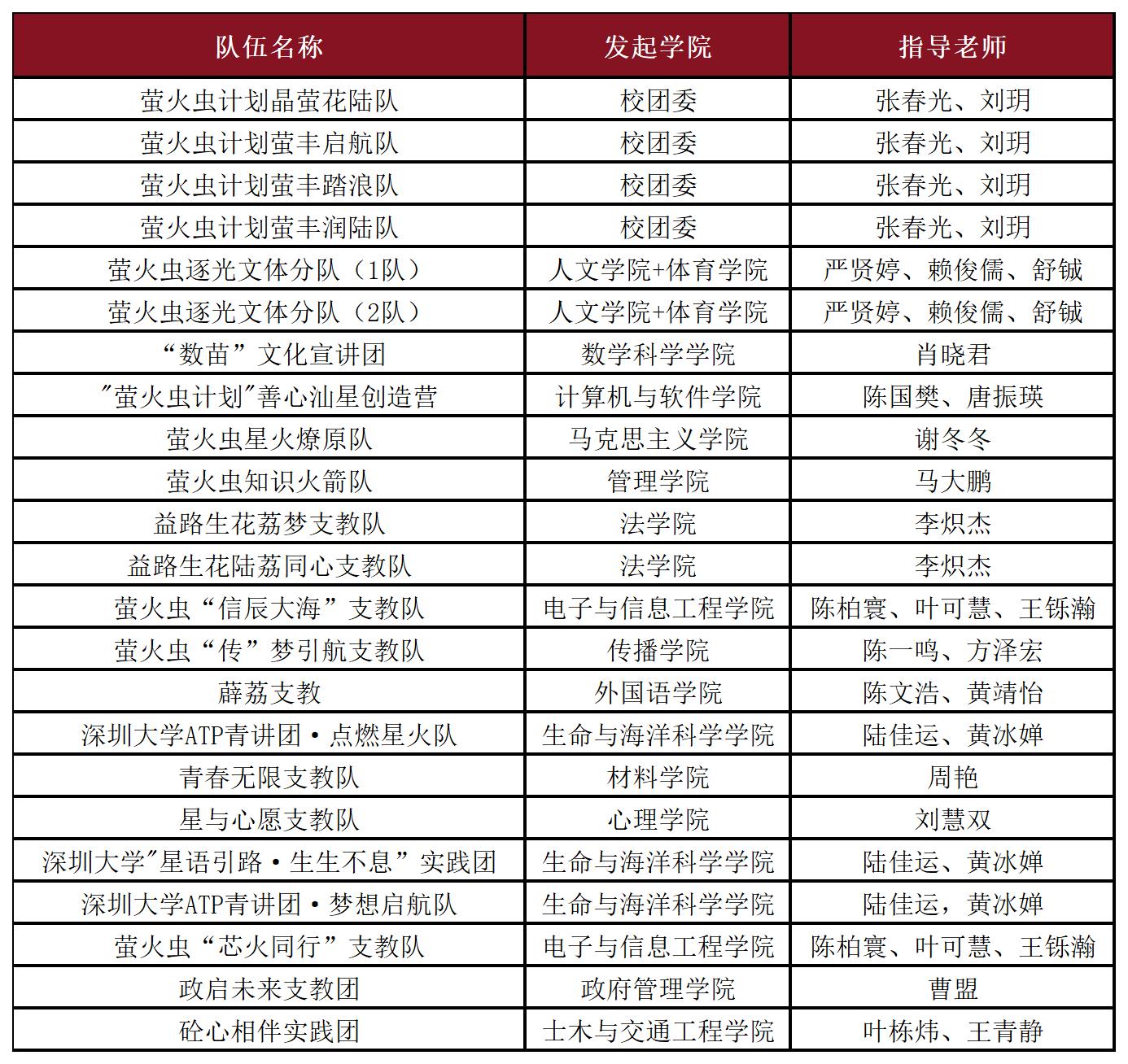 深圳大學支教隊伍名單