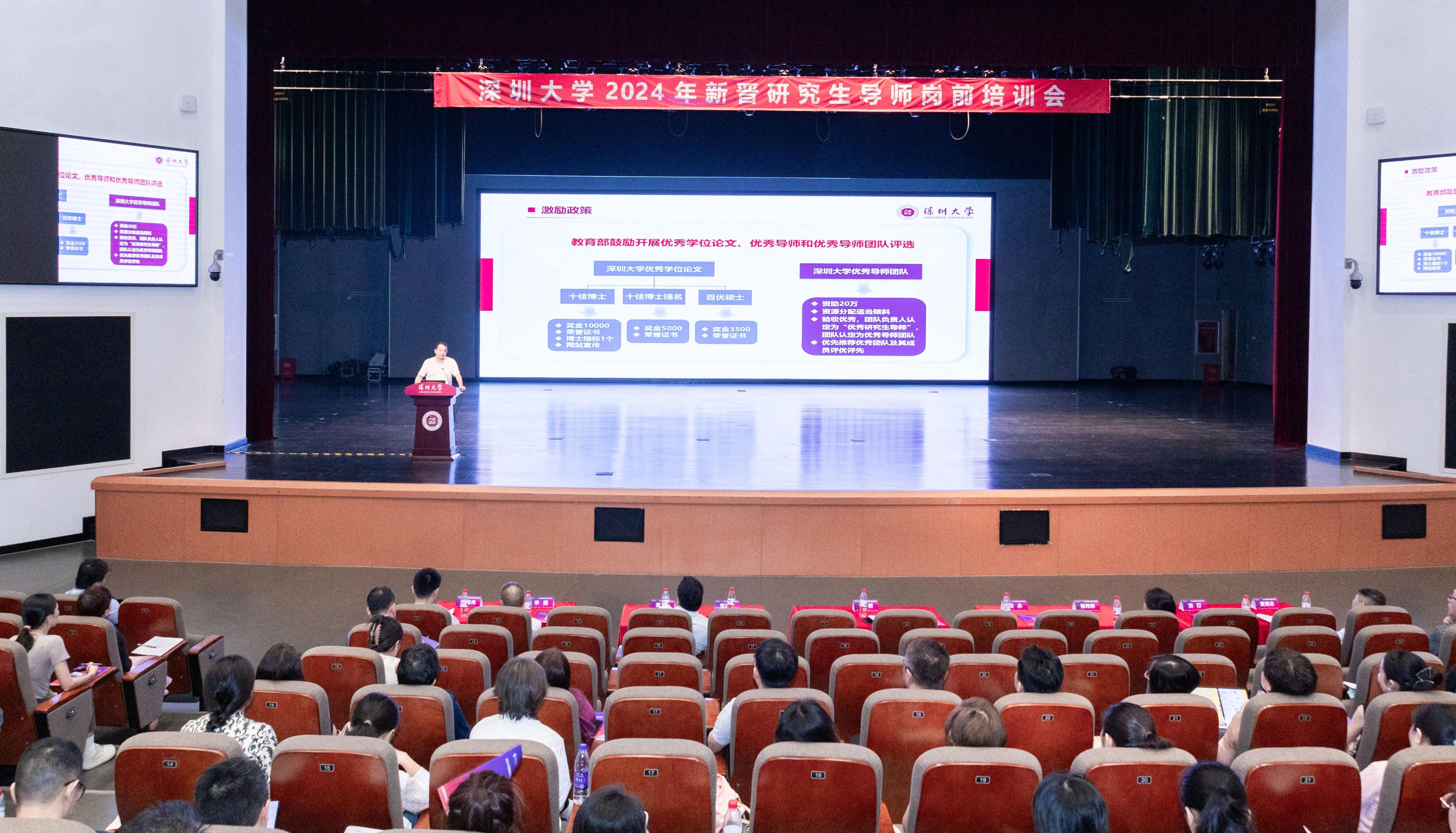 為進一步加強研究生導師隊伍建設,造就一支有理想信念、道德情操、扎實學識、仁愛之心的研究生導師隊伍,9月21日,深圳大學2024年新晉研究生導師崗前培訓會在深圳大學麗湖校區文匯禮堂舉辦。深圳大學副校長周輝,中國工程院院士、深圳大學特聘教授范滇元,深圳大學研究生院院長劉永出席會議。近五百位新晉研究生導師參加培訓。