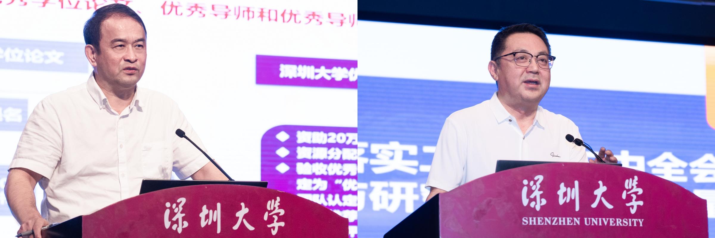 培訓會還現場舉辦深圳大學優秀研究生學位論文頒獎儀式。據悉,自2023年以來,深圳大學每年都會開展一次優秀碩博畢業論文評選工作,以期提高研究生論文質量,樹立研究生追求卓越典型。今年,深圳大學共評選出6篇“十佳博士論文”、6篇“十佳提名論文”及93篇“百優碩士論文”。頒獎儀式上,周輝等為獲得“十佳博士論文”“十佳提名論文”獎的導師及學生和“百優碩士論文”的獲獎代表頒獎。