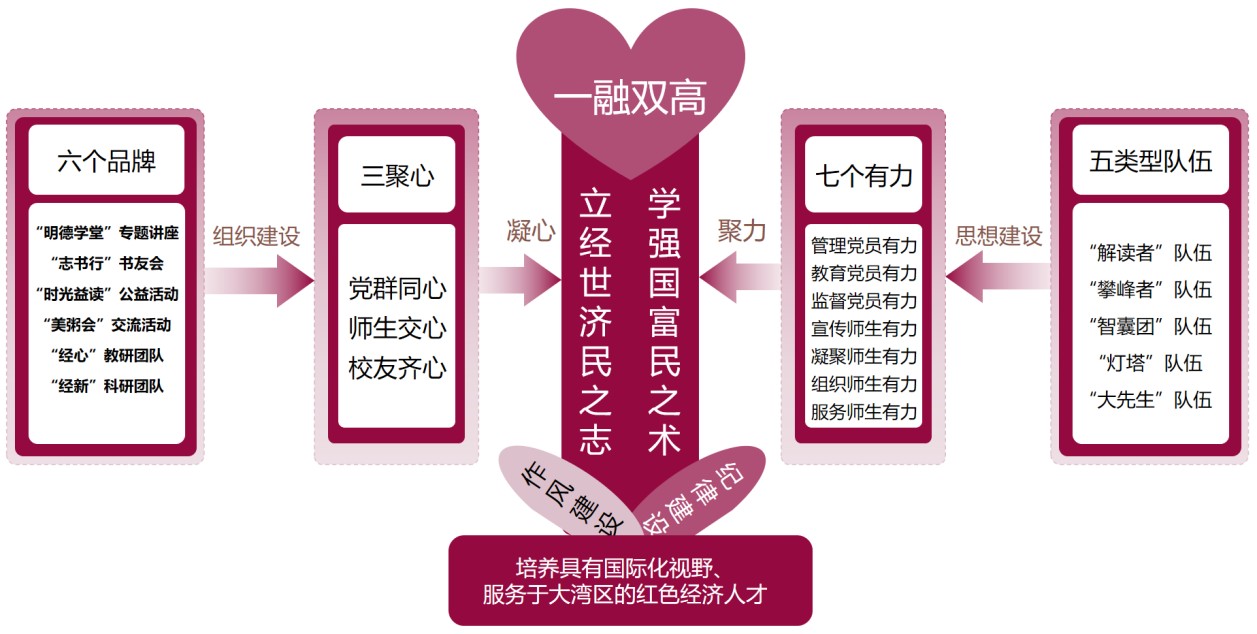 支部以“五講五力”的新型智庫黨建工作體制機制,將黨建與智庫業務有機結合,走出了一條以特色黨建引領特色智庫建設、以高水平智庫助推高質量黨建的融合之路。中心兩度獲得“深圳市教育工作先進單位”稱號,中心的咨政成果入選2021年中國智庫特色案例“咨政建言”、是入選2022“中國智庫索引”高校智庫百強A+中唯一聚焦于港澳研究的機構,建有全國最大、最齊全的基本法研究專題數據庫。