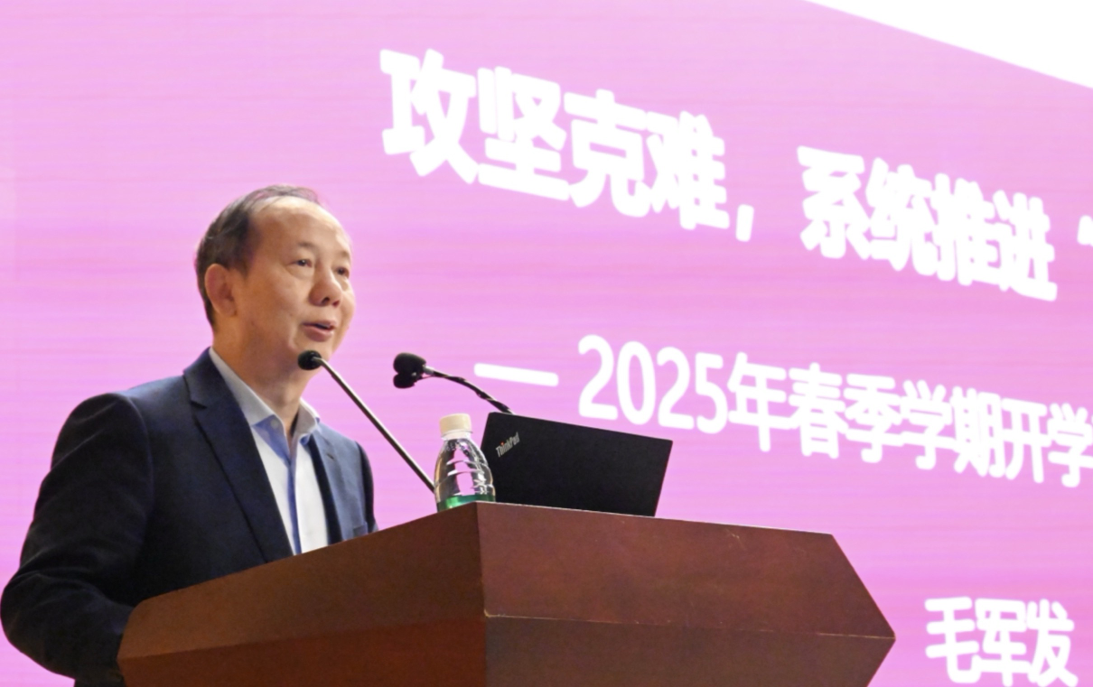 毛軍發以“攻堅克難,系統推進‘雙一流’創建”為題作2025年春季學期開學工作會議報告。他回顧2024年學校工作以及取得的標志性進展,同時也指出目前學校發展仍存在的一些問題和挑戰。毛軍發強調,面對當前挑戰,要立足國家重大戰略和“雙區”發展需求,進一步全面深化辦學體制機制改革,進一步全面推進高水平大學三期建設,落實1+4+X工程各項任務,取得若干決定性進展,全力以赴沖刺“雙一流”。他對新一年的重點工作作出具體部署,強調2025年要對照完成“十四五”規劃,研究制訂“十五五”規劃;全面深入快速推進高水平大學三期建設;強化師資隊伍建設,制訂、完善激發活力的師資隊伍建設制度,做好人才培育與申報工作;深化人才培養綜合改革,優化、完善面向未來的“雙創”人才培養模式;推動科研質量全面提升,建設、完善追求卓越的科學研究體制機制;鞏固開拓國際化辦學通道;持續提升辦學條件,優化調整辦學布局;提升組織管理效能。毛軍發指出,決戰2025,勇在擔當,貴在執行,重在落實,全校上下要不忘初心,牢記使命,扛起沖鋒大旗,合力將深圳大學建設成為世界一流綜合性大學。