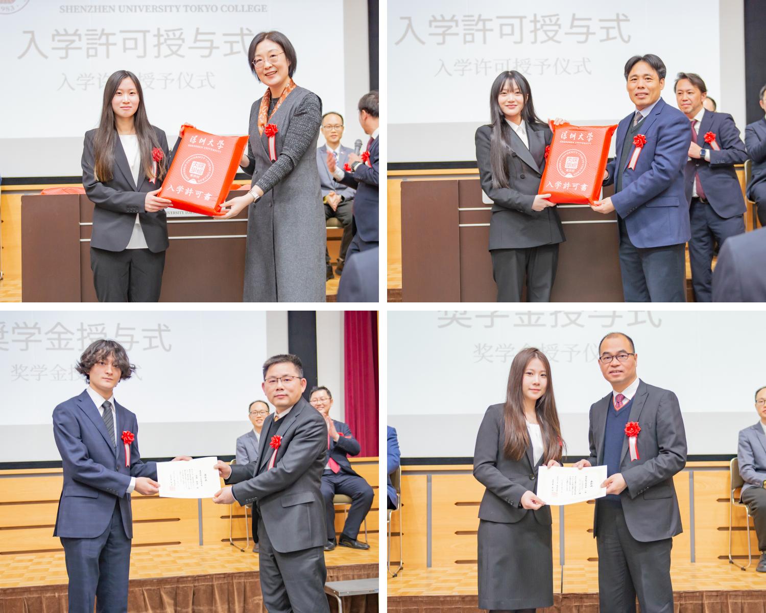 開學典禮上,深圳大學相關學院和職能部門負責人為新生發放錄取通知書和“開學禮包”,為優秀學生發放入學獎學金。