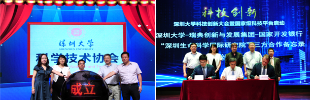 借此次會議召開之際,我校啟動國家發改委“大數據系統計算技術國家工程實驗室”、教育部“二維材料光電科技教育部國際合作聯合實驗室”建設,為“深圳大學科學技術協會成立”掛牌,并共同見證深圳大學-瑞典創新與發展集團-國家開發銀行簽署“深圳生命科學國際研究院” 三方合作備忘錄。