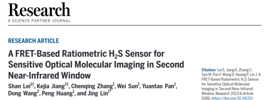 近日,深圳大學(xué)醫(yī)學(xué)部生物醫(yī)學(xué)工程學(xué)院林靜特聘教授團(tuán)隊(duì)在Science合作期刊《Research》(影響因子11,中科院一區(qū),TOP期刊)上發(fā)表了題為《A FRET-Based RatiometricH2SSensor for Sensitive Optical Molecular Imaging in Second Near-Infrared Window》的研究論文。醫(yī)學(xué)部副研究員雷珊、研究生姜珂佳為共同第一作者,林靜教授為通訊作者,深圳大學(xué)為唯一完成單位。