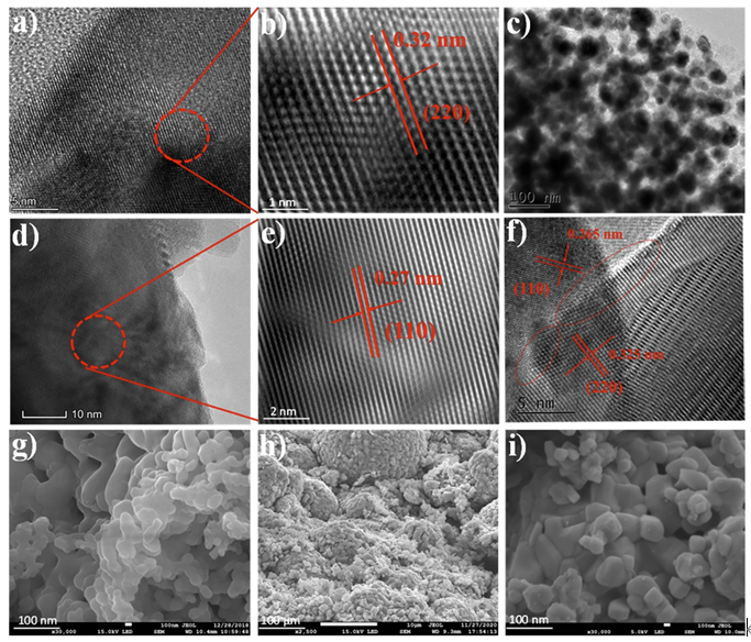 此外,他們通過高分辨率透射電子顯微鏡和場發(fā)射電子顯微鏡對微觀結(jié)構(gòu)和表面形貌進(jìn)行了表征,如圖3所示。