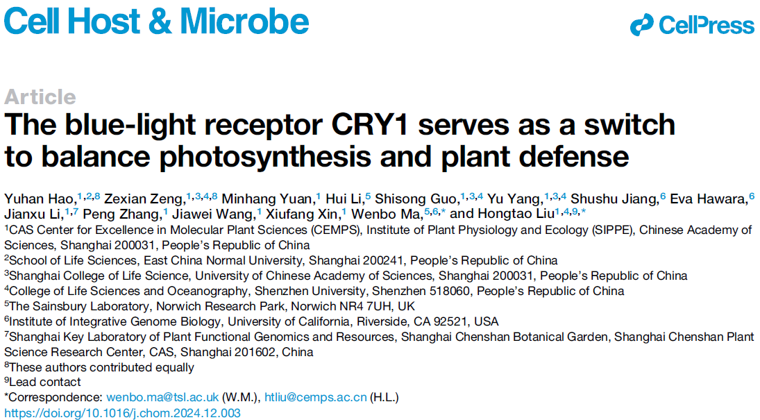 Cell Host & Microbe | 劉宏濤團(tuán)隊發(fā)現(xiàn)藍(lán)光受體CRY1平衡植物光合和免疫