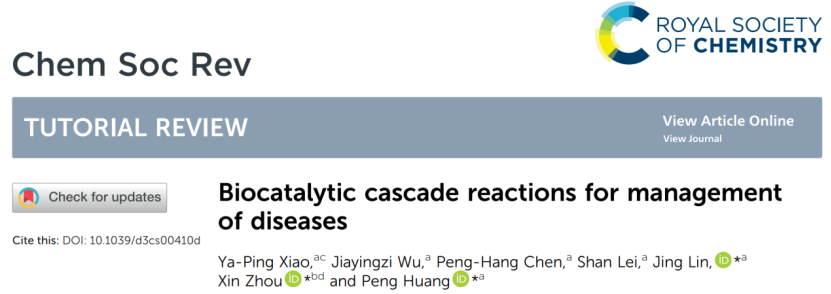 近日,深圳大學醫學部生物醫學工程學院黃鵬特聘教授團隊在國際頂級學術期刊Chemical Society Reviews(影響因子40.4,中科院一區,TOP期刊)上發表題為“Biocatalytic cascade reactions for management of diseases”的封面論文。論文的第一作者為深圳大學醫學部博士后肖亞平,教授黃鵬、林靜和中國科學院精密測量科學與技術創新研究院研究員周欣為共同通訊作者,深圳大學為第一單位,該團隊所在的生物醫學工程學科屬于廣東省優勢重點學科。
