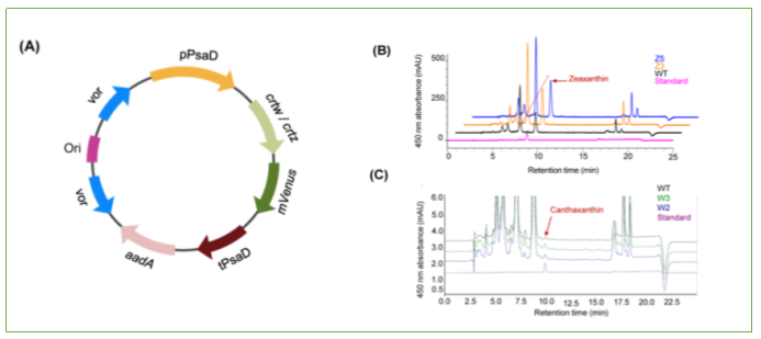 圖3 葉綠體附加體系統應用-高價值產物類胡蘿卜素生物合成