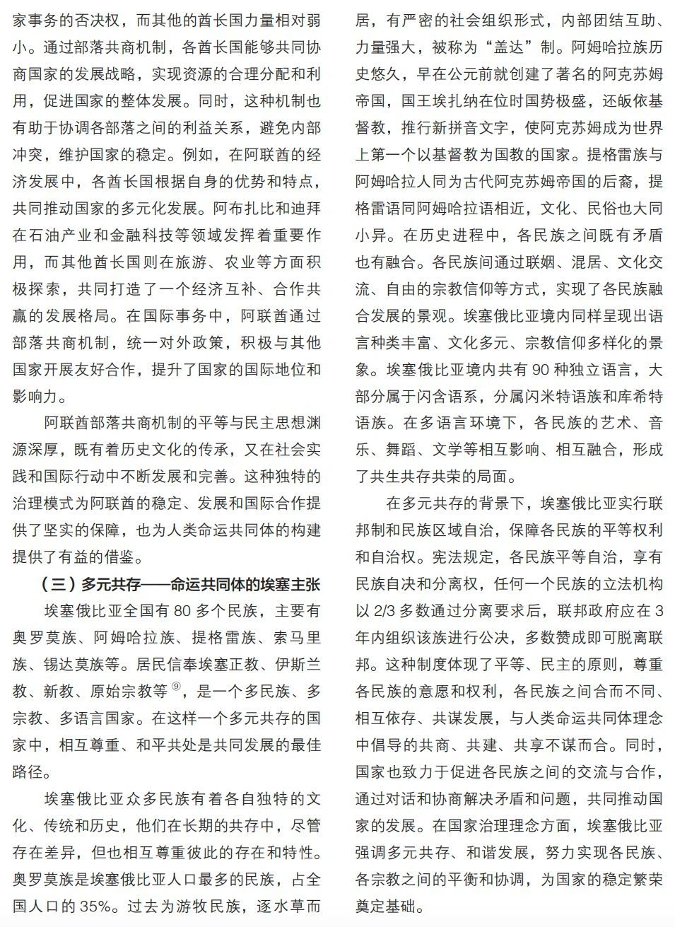 本文梳理金磚十國關(guān)于人類命運(yùn)共同體理念的思想淵源,探討各國傳統(tǒng)文化中與該理念的契合點(diǎn),為金磚國家交流合作提供思想基礎(chǔ)。文章將十個國家命運(yùn)共同體思想基礎(chǔ)的來源分為三大類別:其一,根植于各國傳統(tǒng)與現(xiàn)代思想中的共治理念,分別包含基于“天下共治”的中國理念、“聚異統(tǒng)一”的俄國智慧、以“公正美學(xué)”為內(nèi)核的巴西藝術(shù);其二,成長于部落文化中的共商理念,包含“人外無人”的南非精神、“部落共商”的阿聯(lián)酋原則、“多元共存”的埃塞主張;其三,共生于宗教文化的合一理念,包含“梵我同一”的印度信仰、“人主合一”的沙特境界、“來世永恒”的埃及信念以及“政教合一”的伊朗景觀。通過梳理發(fā)現(xiàn),在金磚十國思想文化深處,均蘊(yùn)含著人類命運(yùn)共同體思想內(nèi)涵,即共商、共建、共享理念。這既是金磚十國文明綿延存續(xù)的強(qiáng)大精神力量來源,也是金磚組織及“全球南方”合力推動全球治理變革的思想基礎(chǔ)。