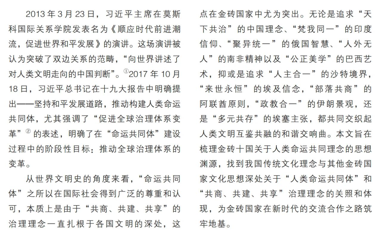 關(guān)鍵詞:金磚國家;命運(yùn)共同體;共商、共建、共享
