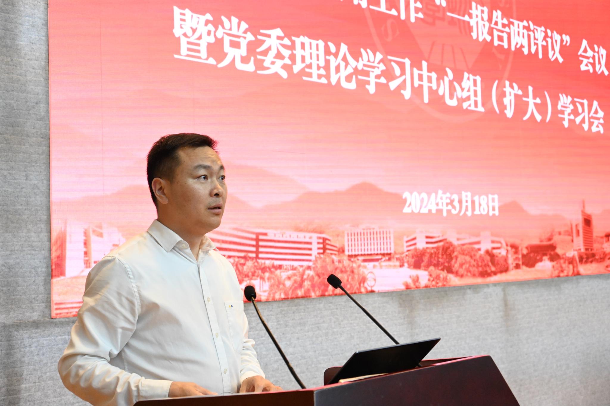 3月18日,深圳大學2023年度干部選拔任用工作“一報告兩評議”會議暨黨委理論學習組(擴大)學習會在匯星樓報告廳召開。全體在家校領導、全體中層正職、主持工作副職和黨員群眾代表參加會議,黨委副書記吳報水主持會議。