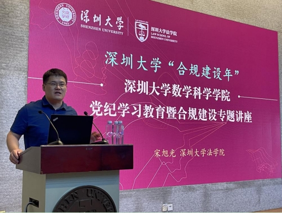 為深入學(xué)習(xí)貫徹習(xí)近平總書記關(guān)于黨紀(jì)學(xué)習(xí)教育的重要講話和指示精神,貫徹落實(shí)學(xué)校關(guān)于黨紀(jì)學(xué)習(xí)教育和合規(guī)建設(shè)的戰(zhàn)略部署,6月12日下午,數(shù)學(xué)科學(xué)學(xué)院在匯星樓三號報告廳舉辦了黨紀(jì)學(xué)習(xí)教育暨合規(guī)建設(shè)專題講座,本次講座邀請到深圳大學(xué)法學(xué)院宋旭光副院長主講。數(shù)學(xué)科學(xué)學(xué)院領(lǐng)導(dǎo)班子、黨委委員、紀(jì)委委員、系主任副主任、黨支部書記、院辦老師及學(xué)生黨員共140余人參加。講座由數(shù)學(xué)科學(xué)學(xué)院黨委書記王瑜主持。